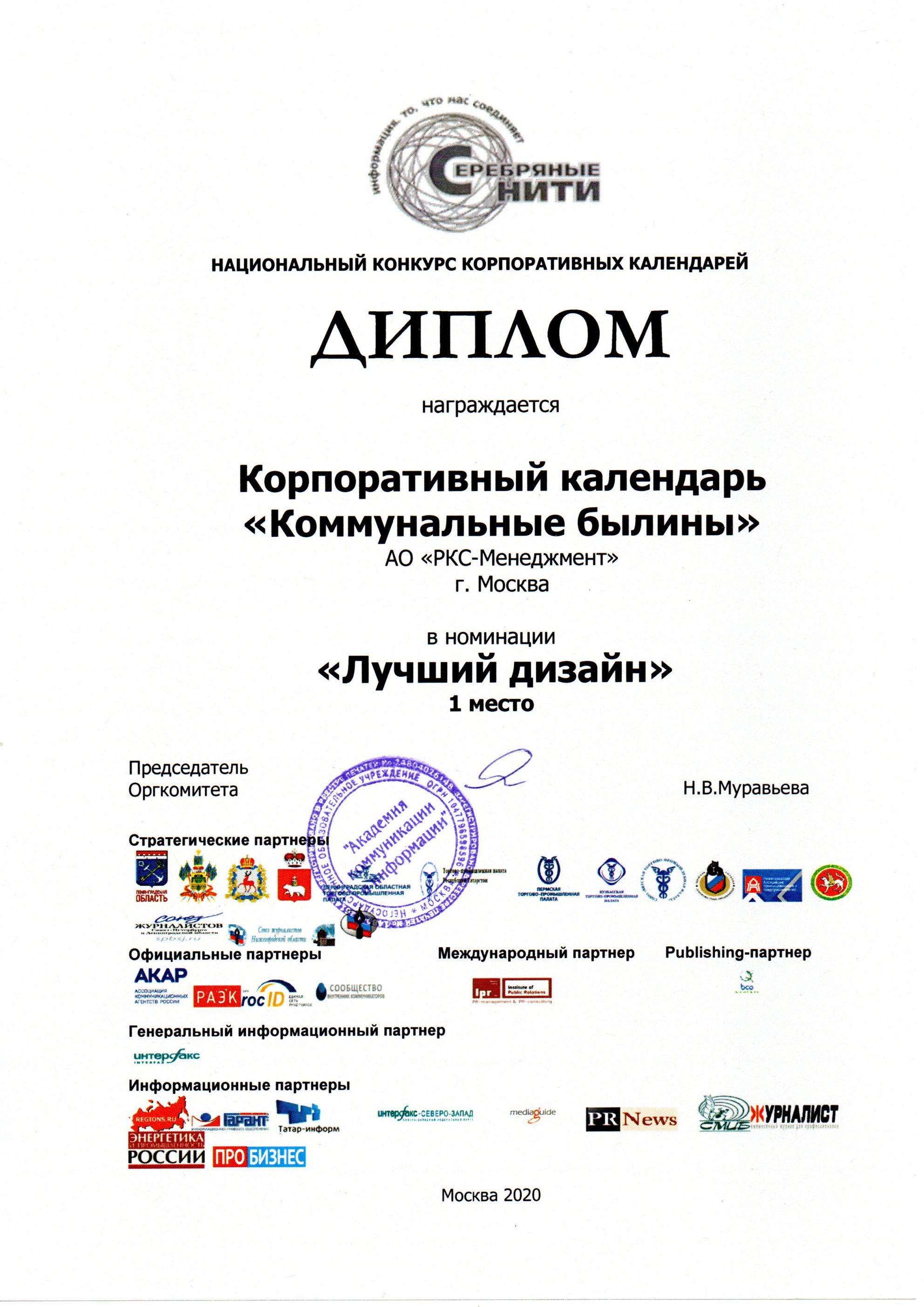Календарь «Российских коммунальных систем» «Коммунальные былины» получил первое место в номинации «Лучший дизайн» V Национального конкурса корпоративных календарей «Серебряные нити-2020». Всего в творческом состязании этого года приняли участие 35 проектов из различных отраслей экономики: ТЭК, финансы, консалтинг, машиностроение, химическая промышленность, судостроение, транспорт, лизинг, полиграфия, приборостроение, FMCG и образование.