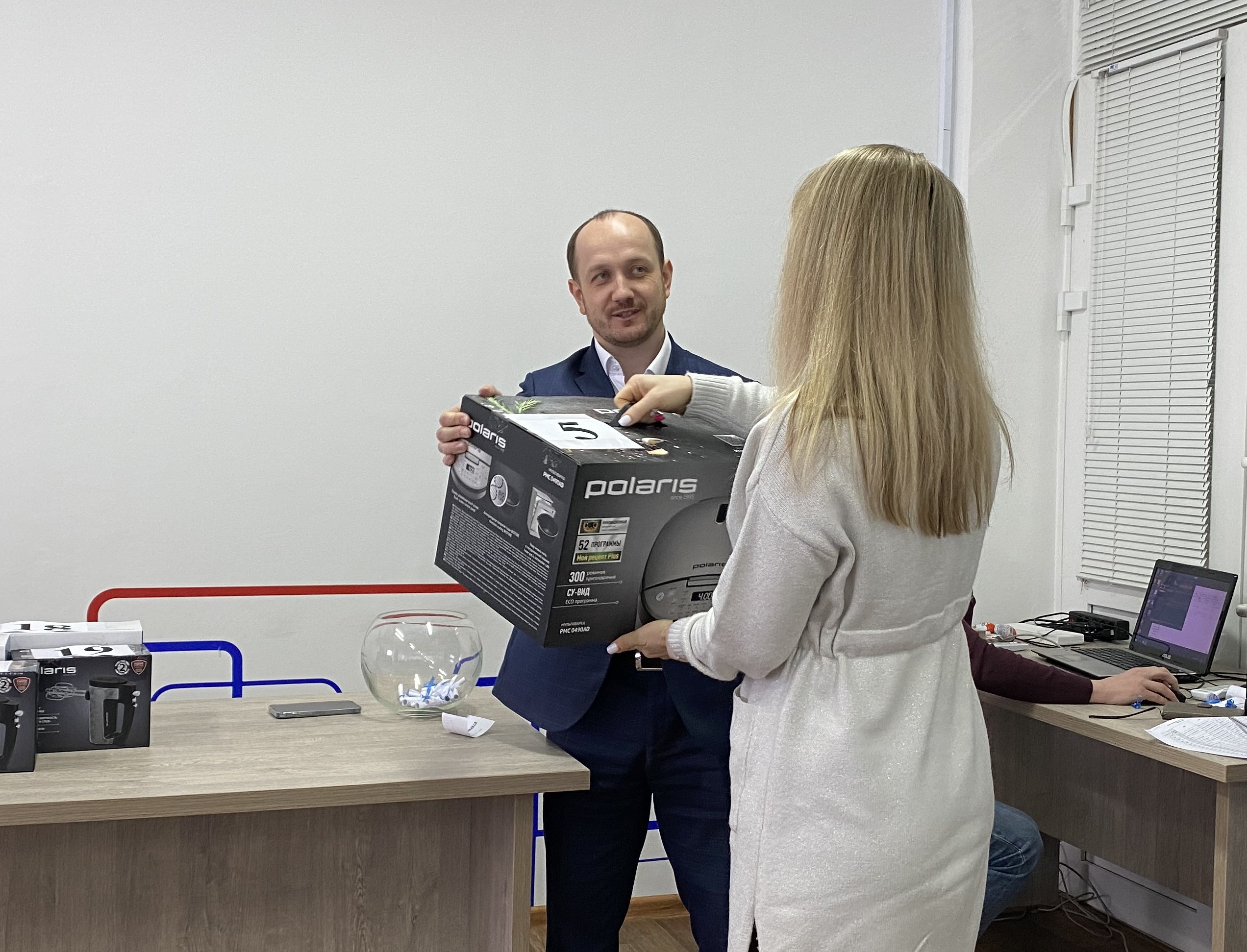 Победители акции были приглашены в ООО «Горводоканал» в этот субботний день для участия в розыгрыше призов, среди которых: пылесос, микроволновая печь, миксеры, блендеры, мультиварки, чайники, утюги и другая бытовая техника. С помощью лототрона каждый подарок нашел своего владельца.